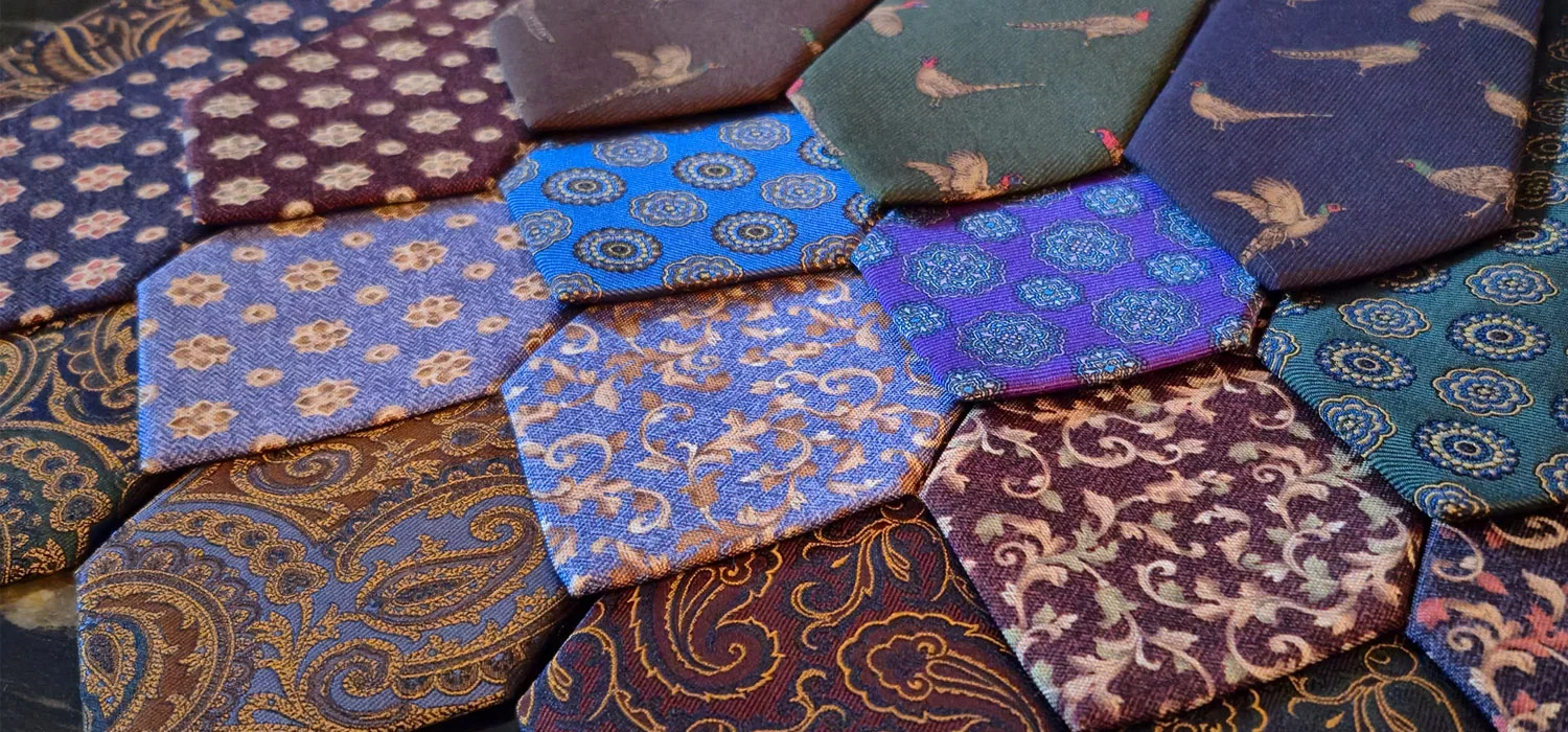 For over three decades, we have specialised exclusively in the art of handmade tie-making. Every tie is individually cut, folded, and hand-sewn in our atelier in Poland, using only the finest silks woven in distinguished Italian mills.